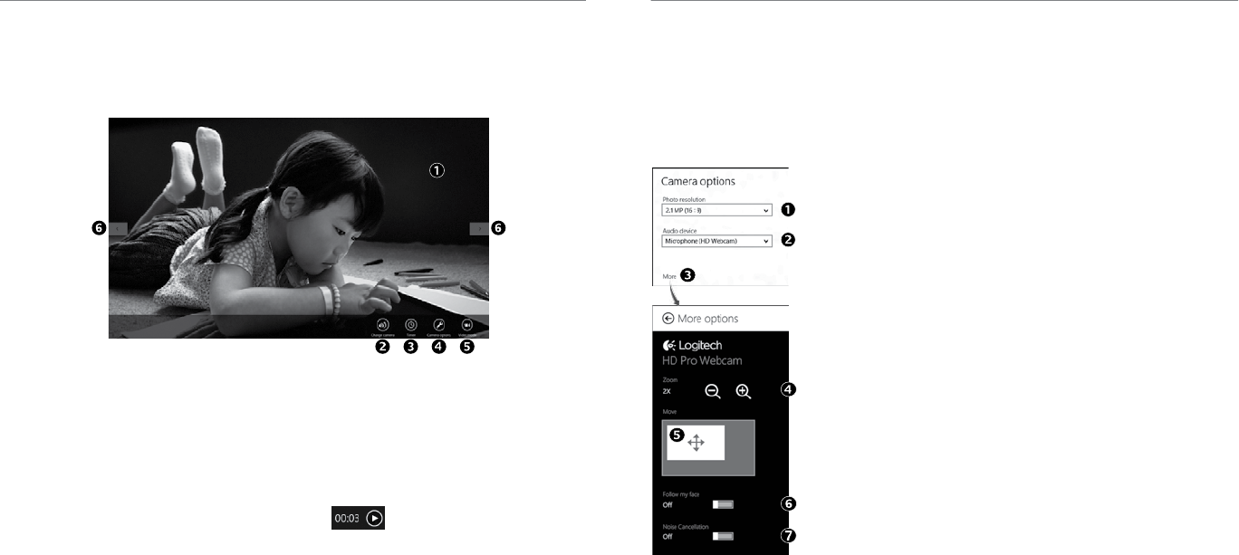 Use the Camera app, available from the Windows 8 Start screen, to operate and control